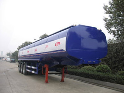 | 運油半掛車運輸品名:汽油;密度:0.7噸/立方米;罐體有效容積:37.5立方米;帶圓弧梯形截面罐體外形(mm):長11800,上寬2200,下寬2400,高1380。該車僅配三軸牽引車。該拖車應(yīng)在側(cè)面和后部安裝車身反光標(biāo)識。 |