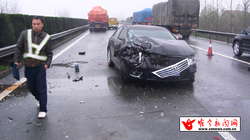 日前,京港澳高速公路江夏段發(fā)生一起嚴(yán)重交通事故:一輛豐田轎車因雨天側(cè)滑撞上中央隔離帶后,失控撞開正在執(zhí)行施救作業(yè)的清障車,并將一名施救工當(dāng)場撞暈。 6日下午2時許,一輛號牌為鄂L600XX豐田凱美瑞轎車行駛至京港澳高速公路江夏段1230公里處(武漢向),由于雨天道路濕滑,豐田轎車撞上中央隔離帶后方向失控,并沖進前方施救警戒區(qū),將一輛正在執(zhí)行施救作業(yè)的清障車撞開10余米,正在車前的施救工因避讓不及被當(dāng)場撞暈。隨后,傷者被緊急送往咸安區(qū)人民醫(yī)院搶救。 據(jù)豐田轎車駕駛員謝某稱,當(dāng)時,他駕駛鄂L600XX車準(zhǔn)備前往武漢辦事,由于雨天道路濕滑,能見度不高,加之自己車速較快,超車時不慎撞上中央隔離帶后方向失控,撞上一輛黃色的清障車尾部,清障車被推撞時將站在車前的施救工撞倒。 經(jīng)初步調(diào)查,事故原因可能是由于雨天駕駛未降低行駛速度造成的,基本上可以排除與剎車失靈有關(guān)。目前,此案正在進一步處理中。截止發(fā)稿時,傷者已經(jīng)基本上脫離了生命危險。