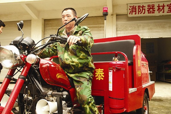 這款小型消防車就是一臺(tái)三輪摩托車,跟普通消防車一樣全身紅亮,外表看似不起眼的它,作用可真不小,不少村莊道路狹窄,一旦發(fā)生火災(zāi),個(gè)頭碩大的消防車根本進(jìn)不去,這時(shí)“小個(gè)子”就能大顯身手,不但跑得快,而且很好操作使用,進(jìn)小巷滅火可是它的強(qiáng)項(xiàng)。消防隊(duì)員說,車上配有兩套滅火裝置,連接消防栓射出的水柱能達(dá)45米遠(yuǎn),可供水到5層樓之高。